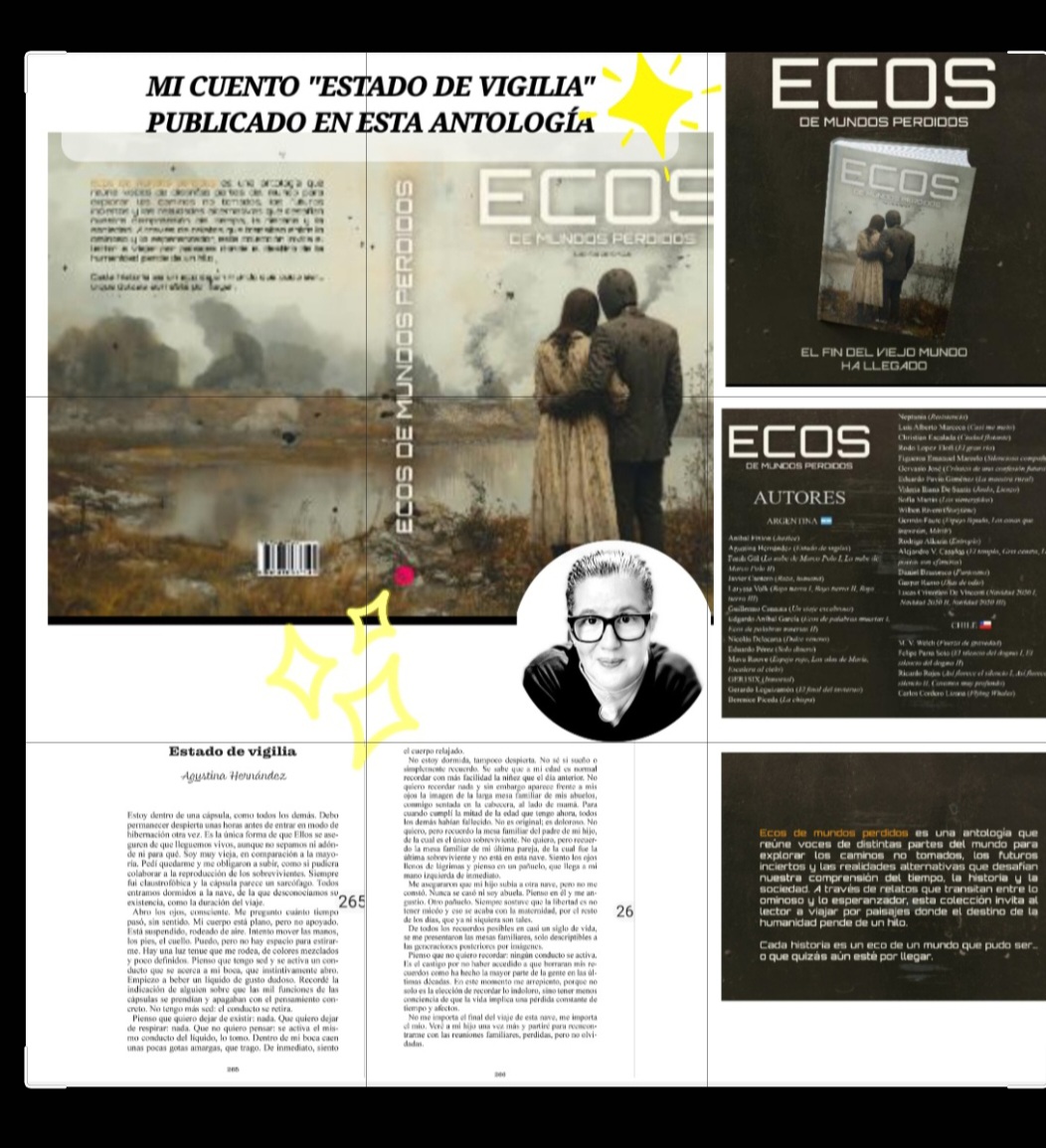 En el mes de julio de 2024, su cuento inédito "Estado de vigilia" fue publicado por la revista literaria Sombra Etérea (Colombia) en su número 2 y seleccionado para la antología sobre cuentos distópicos de la Editorial Nébula titulada: "Ecos de mundos perdidos", publicada en febrero de 2025.